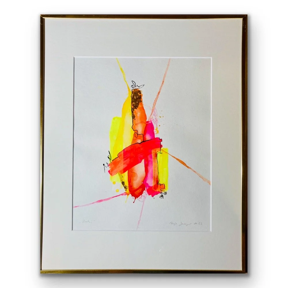 Leuchtende Farben wie Gelb, Pink und Orange kombiniert mit goldenen Akzenten verleihen "Uschi" eine besondere Strahlkraft. Das Werk symbolisiert Mut, Entschlossenheit und lädt dazu ein, die eigene Kraft zu entdecken und das Leben selbstbewusst zu gestalten.